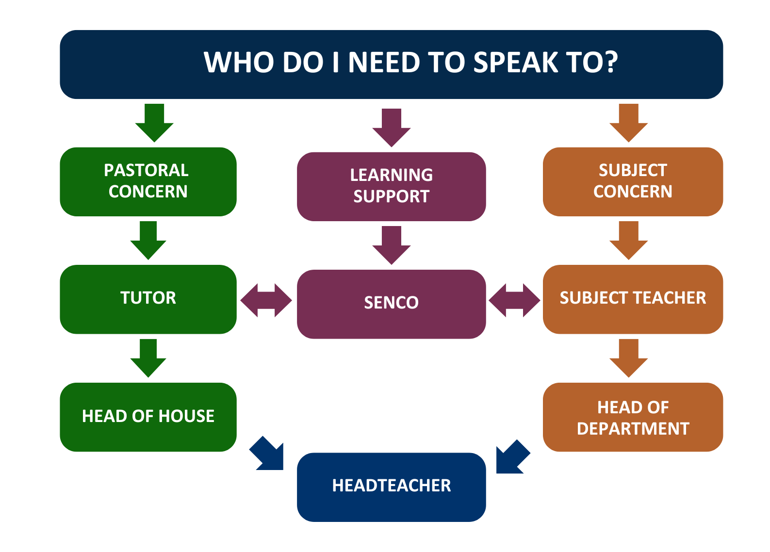 If you have a question or concern relating to your child and are unsure who you need to speak to, the chart below should help you.