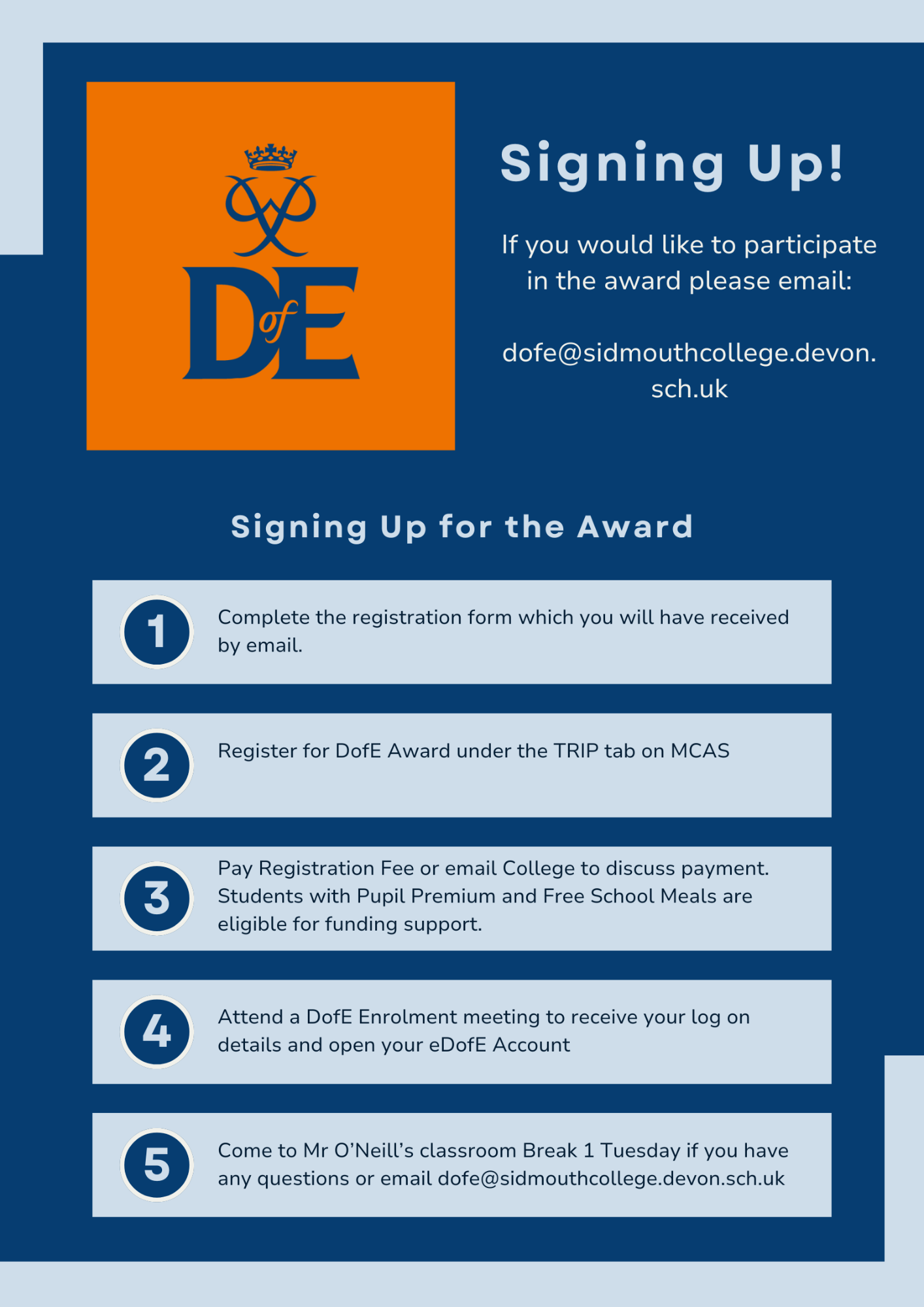 We are currently reintroducing the Silver Award at the College and at the moment only Year 10 students that successfully completed the Silver Award are currently being invited to participate. Please email dofe@sidmouthcollege.devon.sch.uk if you would like to talk about the Silver Award.